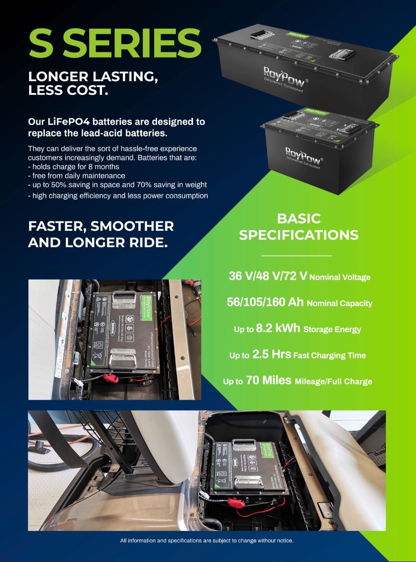 RoyPow Golf Cart Battery 48V 105Ah S51105L Lithium Battery