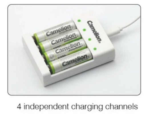 AA and AAA Ni-Mh Camelion Rechargeable Batteries (4aa & 4aaa) + Charger Bundle