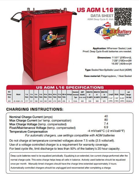 All of U.S. Battery’s Deep Cycle AGM Batteries feature the latest and most advanced paste and plate making technologies available.